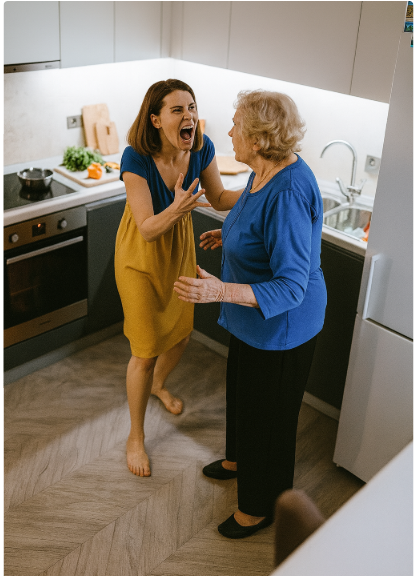 — Хватит! — Она развернулась к свекрови, и та отшатнулась от ярости в её глазах. — Хватит мне указывать, что делать! Хватит учить меня жизни! Хватит называть меня доченькой! Я вам не дочь!
