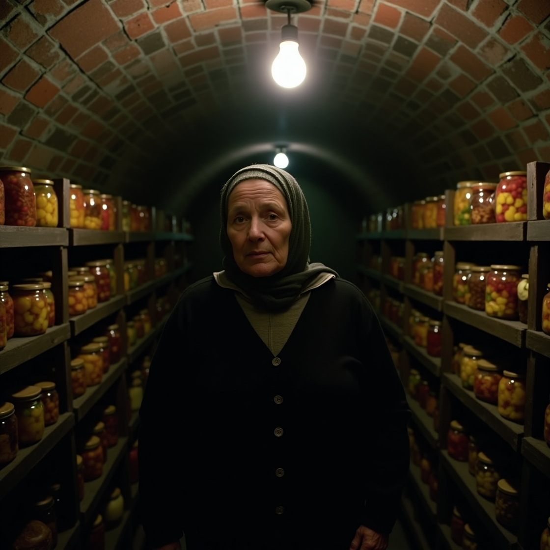 Сырой, земляной дух погреба обволакивал, смешиваясь с едким запахом уксуса и пряностей от сотен банок, расставленных на полках. Десять лет их никто не трогал. Холод пробирал даже сквозь толстый свитер.