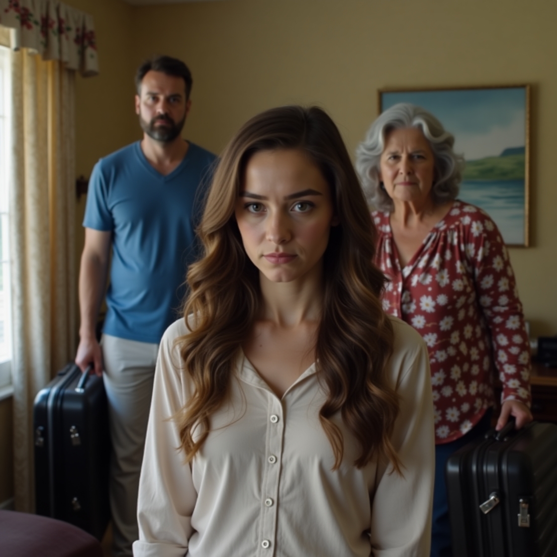 На следующий день Марина Петровна действительно приехала. Без предупреждения. Осенний дождь моросил, асфальт блестел, листья липли к подошвам. Алла открыла дверь — и увидела перед собой женщину с красными щеками, пухлым рюкзаком и двумя огромными чемоданами.