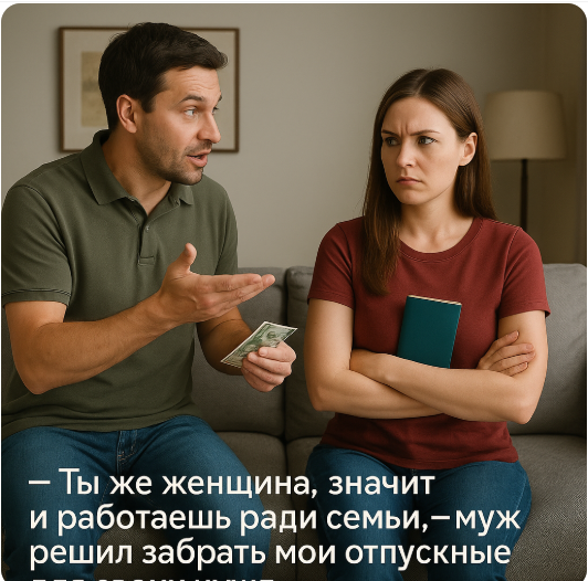 — Запомни, ты же женщина, жена! А значит, работаешь ради семьи. Поэтому перечисли мне все твои отпускные и зарплату. Я сам решу, на что их тратить. У тебя голова пустая.