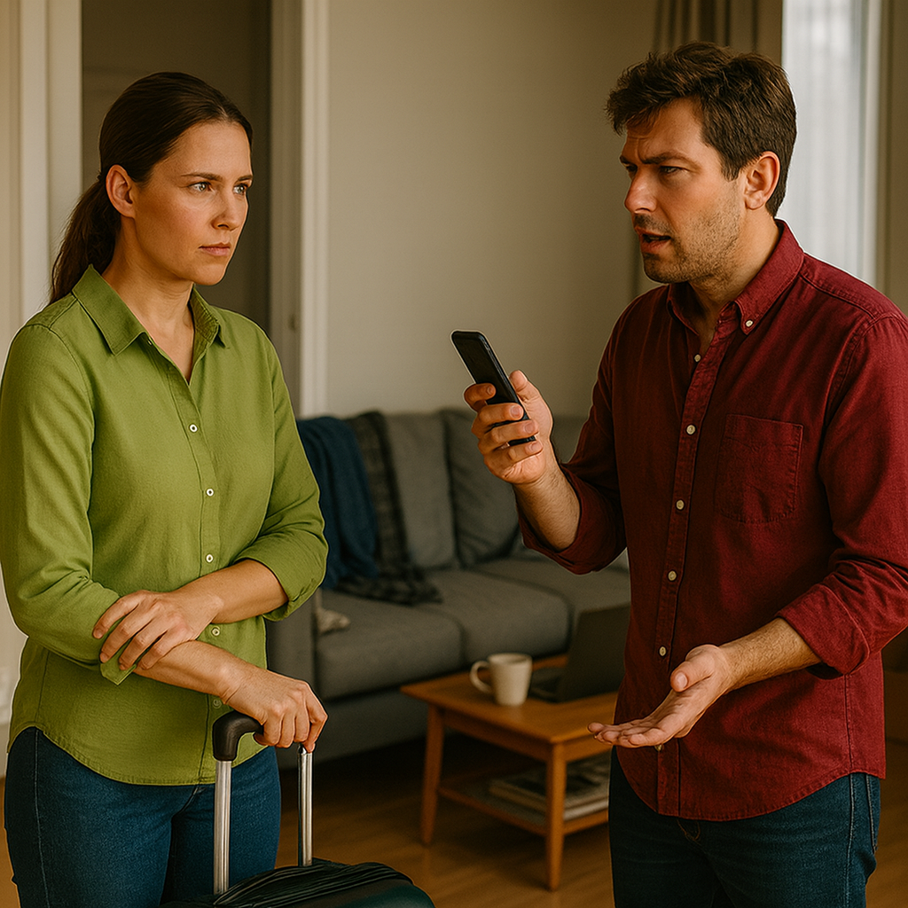 Алёна застегнула чемодан, вынесла в коридор и поставила у двери. Сергей стоял, глядя на багаж, потом рассмеялся. Неуверенно, нервно.