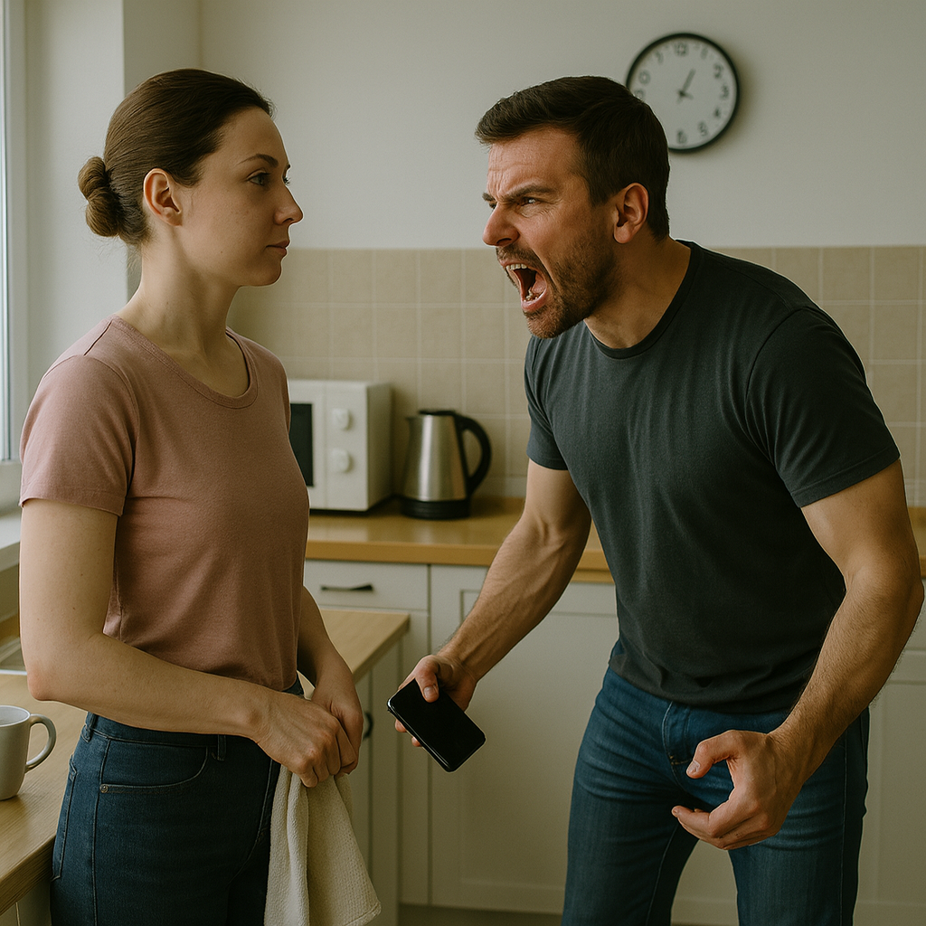 Андрей шагнул вперёд, кулаки сжались. Наталья не отступила. Стояла спокойно, глядя мужу в глаза. Внутри всё дрожало, но снаружи — только спокойствие.