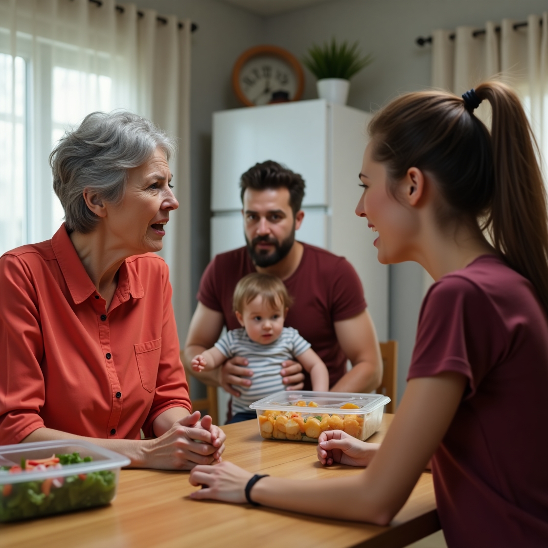 Валентина Петровна нахмурилась. Подошла ближе, заглянула в контейнеры. Лицо свекрови менялось — брови сдвинулись, губы сжались в тонкую линию. Она отодвинула контейнеры, словно они были чем-то отвратительным.