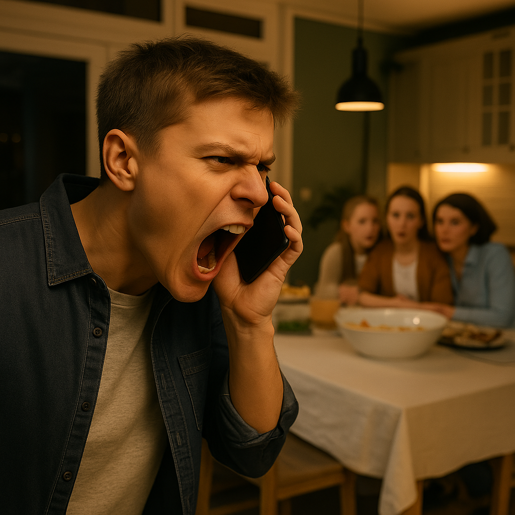 — Мне плевать! Моя родня в гости приехала, ужин ждут! Ты когда приедешь?!