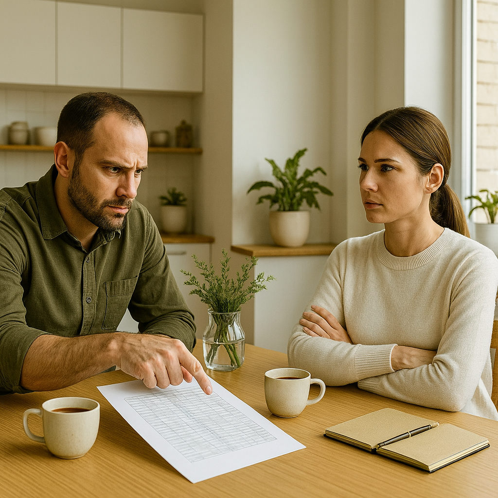 — Ты же сама хотела раздельный бюджет, — продолжил он. — Вот я и посчитал всё честно, поровну.