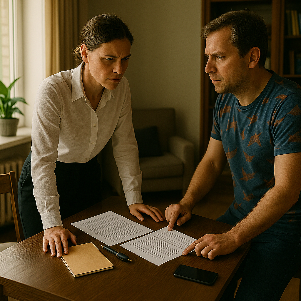 Но через десять дней история повторилась. Полина пришла домой в обед — отпросилась с работы по личным делам. Зашла в комнату и снова застала Игоря за своим столом. Ящик был открыт — очевидно, он подобрал ключ или вскрыл замок. Перед ним лежали документы на машину и квартиру.