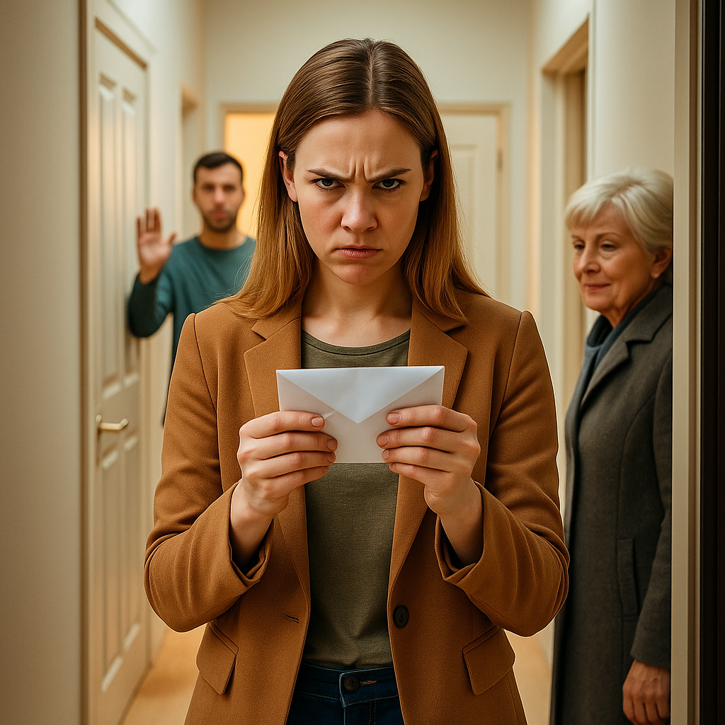 Дверь открылась через двадцать минут. Андрей вошёл и сразу увидел жену, сидящую на диване с конвертом в руках. Лицо у неё было бледное, губы сжаты в тонкую линию.