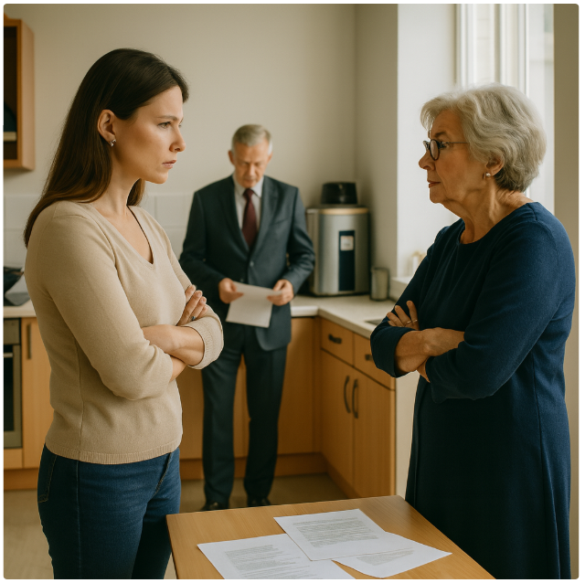 Нотариус поспешно собрал бумаги и ушёл. Свекровь заперлась в ванной и громко рыдала, чтобы все слышали, как её обидели.