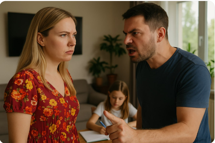 Алиса стояла в дверях комнаты в школьной форме, портфель на плече. Девочка переводила взгляд с мамы на папу, будто не знала, кому верить. Наталья перехватила этот взгляд и натянуто улыбнулась: