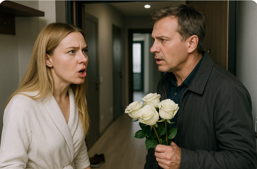 На третий день, ближе к вечеру, Алексей остановился у двери квартиры. В руке — белые розы, в пакете — вино. Он не стал сразу стучать — постоял с минуту, сдерживая волнение. Потом нажал на звонок. Музыка доносилась из-за двери, но никто не реагировал. Он позвонил ещё раз. Потом достал ключ и, затаив дыхание, повернул замок.
