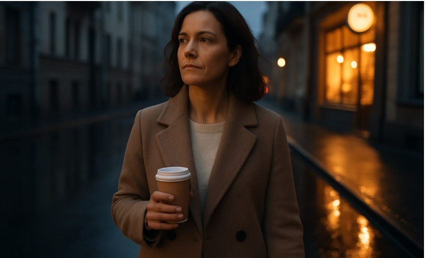 В один из дней она вышла с работы позже обычного. Вечер был прохладный, но чистый. На углу раздавали бесплатный кофе — акция. Бариста в розовом худи сказал: