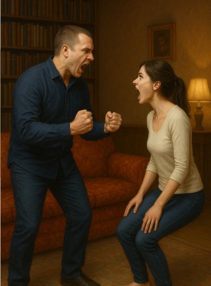Он вошёл в гостиную, распахнув дверь с такой силой, что та ударилась о стену, оставив на свежепоклеенных обоях едва заметную вмятину. Лицо его было багровым, в глазах плясали бешеные огоньки.