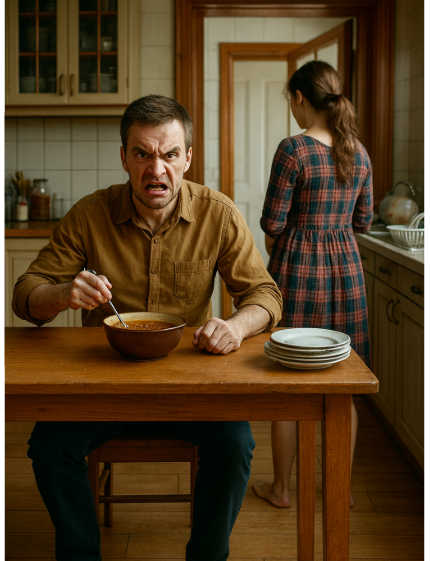 — Оль, это что вообще такое? — он положил ложку, с грохотом ударив ею о край тарелки.