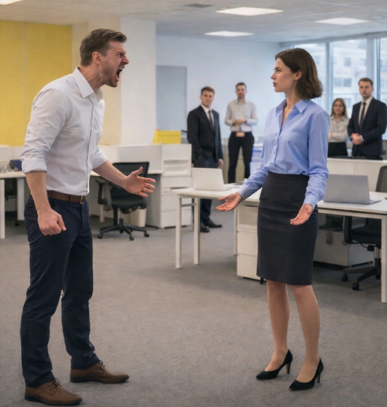 Марина выскочила из кабинета. В приёмной действительно стоял Игорь — красный, взъерошенный, с диким взглядом. Несколько её коллег притормозили в коридоре, с интересом наблюдая за сценой.