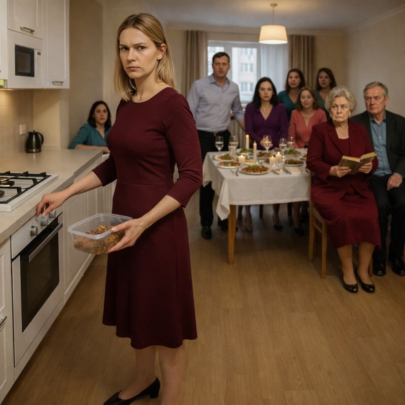 Я медленно встала. Положила книгу на стол. Прошла к плите и повернула все ручки, выключая конфорки. Главное блюдо — запечённая телятина — ещё томилось в духовке. Я выключила и её. Открыла шкаф, достала контейнеры и начала спокойно складывать блюда со стола. Салаты, закуски, нарезку. Всё, что стояло перед гостями. Руки двигались чётко, без спешки.