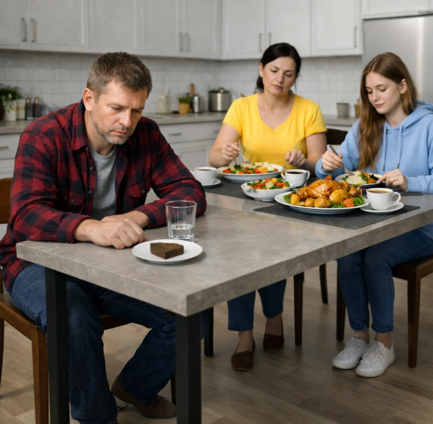 Юля вошла на кухню, села напротив матери. Они начали есть. Медленно, неспешно. Обсуждали какой-то сериал, смеялись. Андрей сидел в двух метрах от них с хлебом в руке и чувствовал, как у него сводит желудок от запаха.