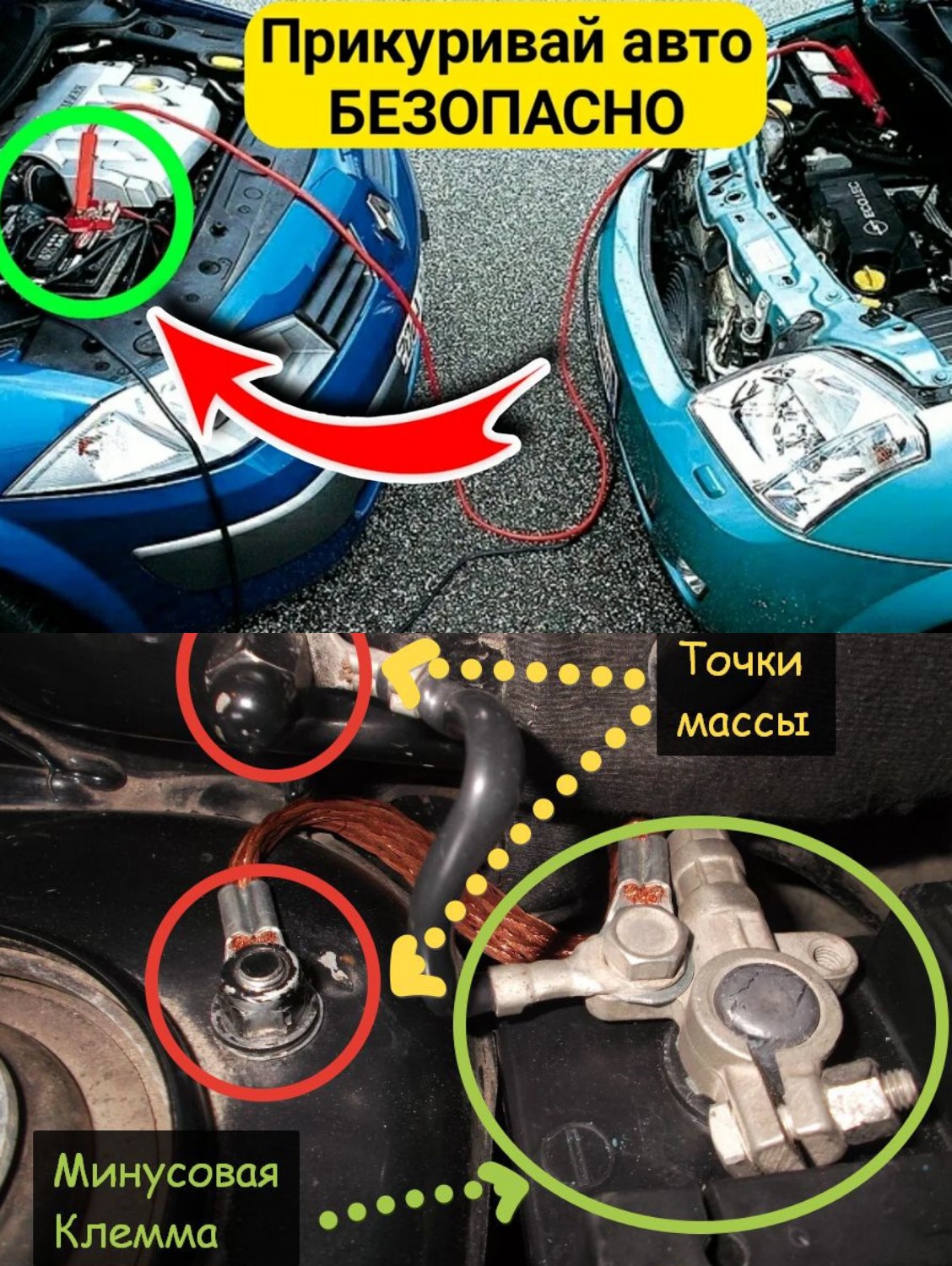 Все достаточно просто: если вы не знаете, в каком состоянии находится аккумулятор “больного” автомобиля, есть версия, что внутри такого аккумулятора образовались взрывоопасные испарения. Любая возможная искра при соприкосновении с этими испарениями может дать взрыв. Много случаев, когда аккумуляторы взрываются, люди стоят с ожогами и не могут даже в скорую позвонить. Поэтому дабы себя обезопасить, мы крепим последний крокодил на максимальном расстоянии от аккумулятора, после чего существует три способа как можно запустить автомобиль.
