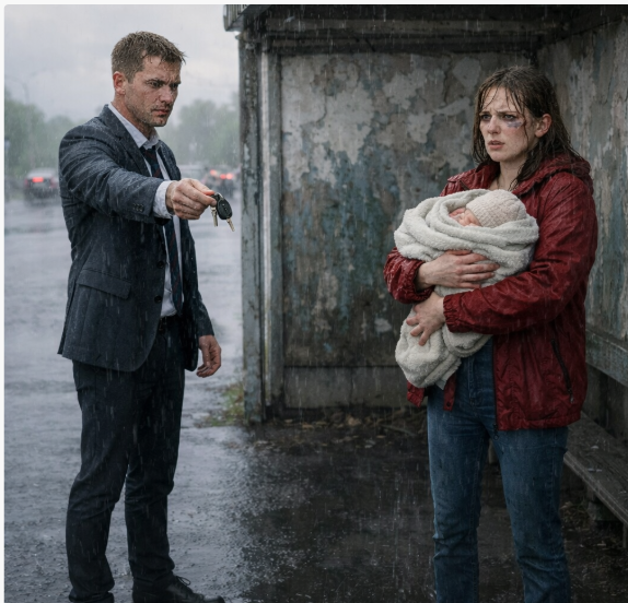 Остановка показалась сквозь дождь — облупленная, с разбитым стеклом. У стены стояла девушка. Насквозь мокрая. В руках свёрток с краешком детской шапочки. Под глазом синяк — старый, жёлто-зелёный.