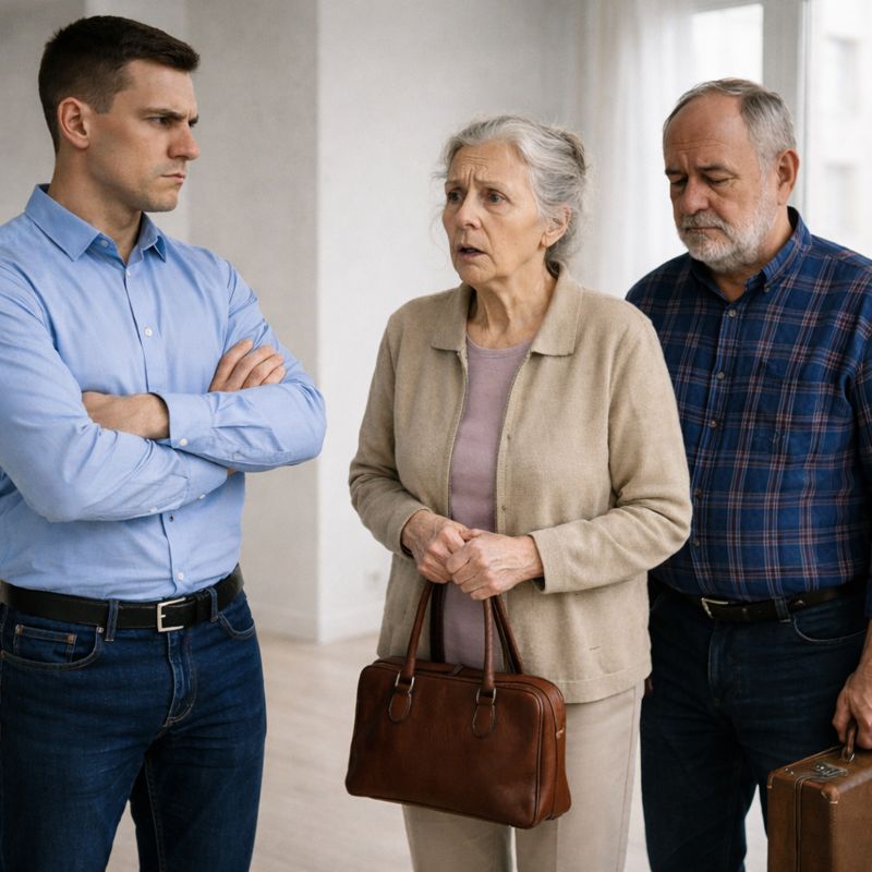 Они стояли на пороге: мать с потрёпанной сумкой, отец с маленьким чемоданом. Оба постаревшие, уставшие, чужие в этом подъезде с консьержем и кодовым замком.
