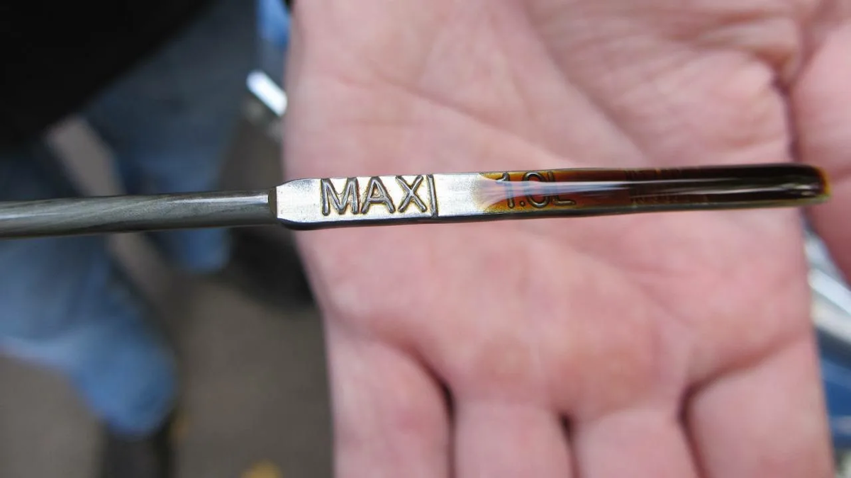 Идеально, если отметка расположена примерно на три четверти между min и max. Это даёт запас на угар, жару, длительную трассу и высокие обороты. Держать уровень «по центру» на немолодом моторе рискованно: через 1000–2000 км он легко уйдёт к минимуму.