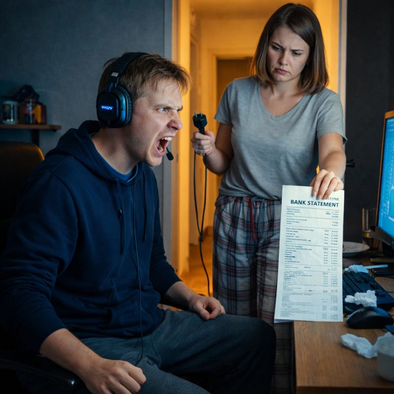 В комнате мигал монитор, Виктор сидел спиной к двери, в продавленном компьютерном кресле. На голове массивные игровые наушники, которые он купил с кредитки месяц назад, «Алин, ну звук — это же погружение!». Правая рука судорожно дёргала мышкой, левая нога отбивала нервную дробь по паркету. Тряслась так, будто у него припадок.