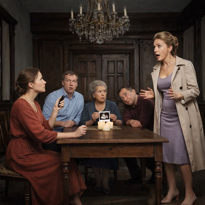 Вероника осталась одна посреди гостиной. Она смотрела на нас — на Максима, обнимающего меня, на свекровь, прижимающую снимок УЗИ к груди. Потом её взгляд упал на бабушкин фарфоровый сервиз на столе. На тот самый, которым она так желала обладать. Её губы дрогнули. Она что-то хотела сказать, но не смогла. Вместо этого она резко развернулась и выбежала из комнаты. Мы слышали, как хлопнула входная дверь.
