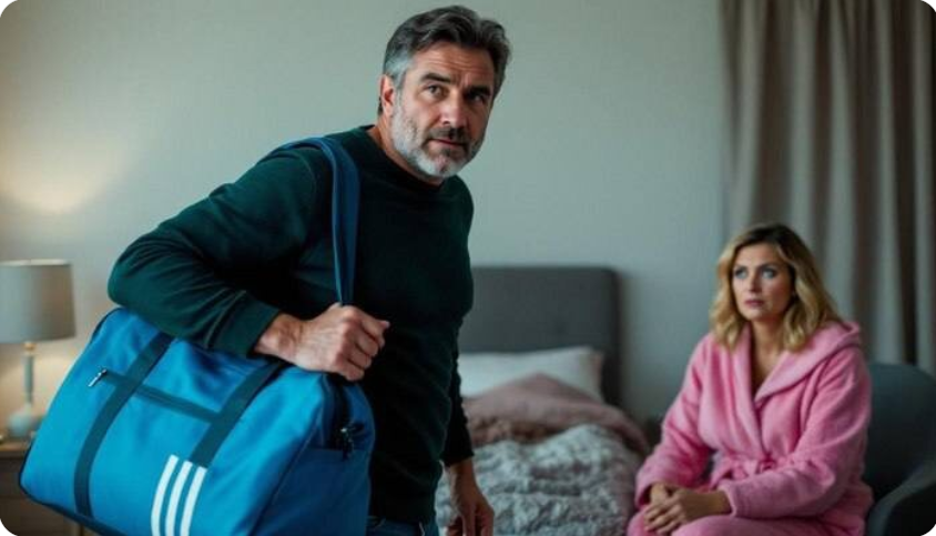 Муж замер у шкафа, потом резко повернулся. В руках у него была спортивная сумка — та самая, синяя с белыми полосками, которую они покупали сыну в школу двадцать лет назад.