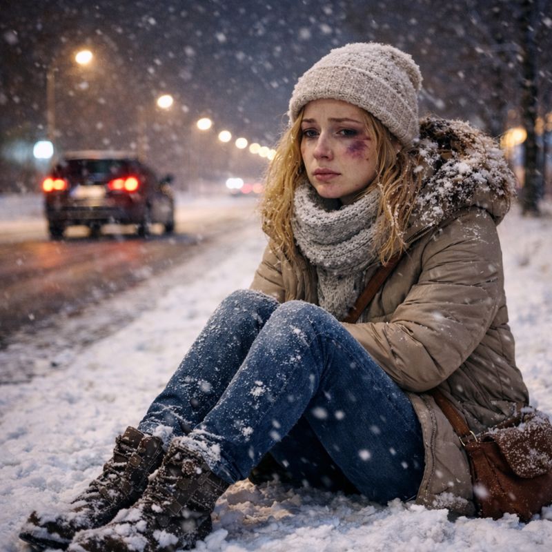 Она попыталась уцепиться, оттолкнуть его, но он был огромен и зол. Его кулак, тяжёлый, с массивным перстнем, прилетел ей в висок. В глазах вспыхнули белые звёзды, боль разлилась горячей волной. Ещё удар. В плечо. Её вытащили из машины как мешок. Она упала в ледяную корку на обочине, ударившись коленом о бетонный отбойник. Дверь с грохотом захлопнулась. Чёрный внедорожник дёрнулся с места, швырнув ей в лицо комья грязного снега из-под колёс, и растворился в белой мгле.