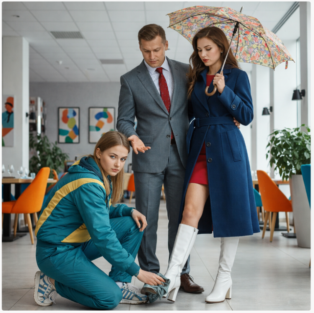 — Валерчик, ну посмотри! — капризно протянула она, останавливаясь посреди холла. — Я опять забрызгала сапоги! Твои парковщики — идиоты, там лужа!