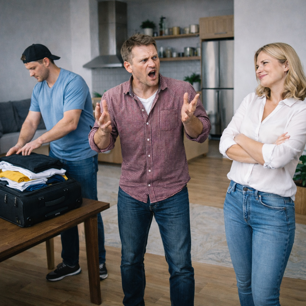 Муж замер, тяжело дыша. Пальцы сжались в кулаки, желваки заходили под кожей. Секунду, две, три — они стояли друг напротив друга, и воздух между ними искрил от напряжения.