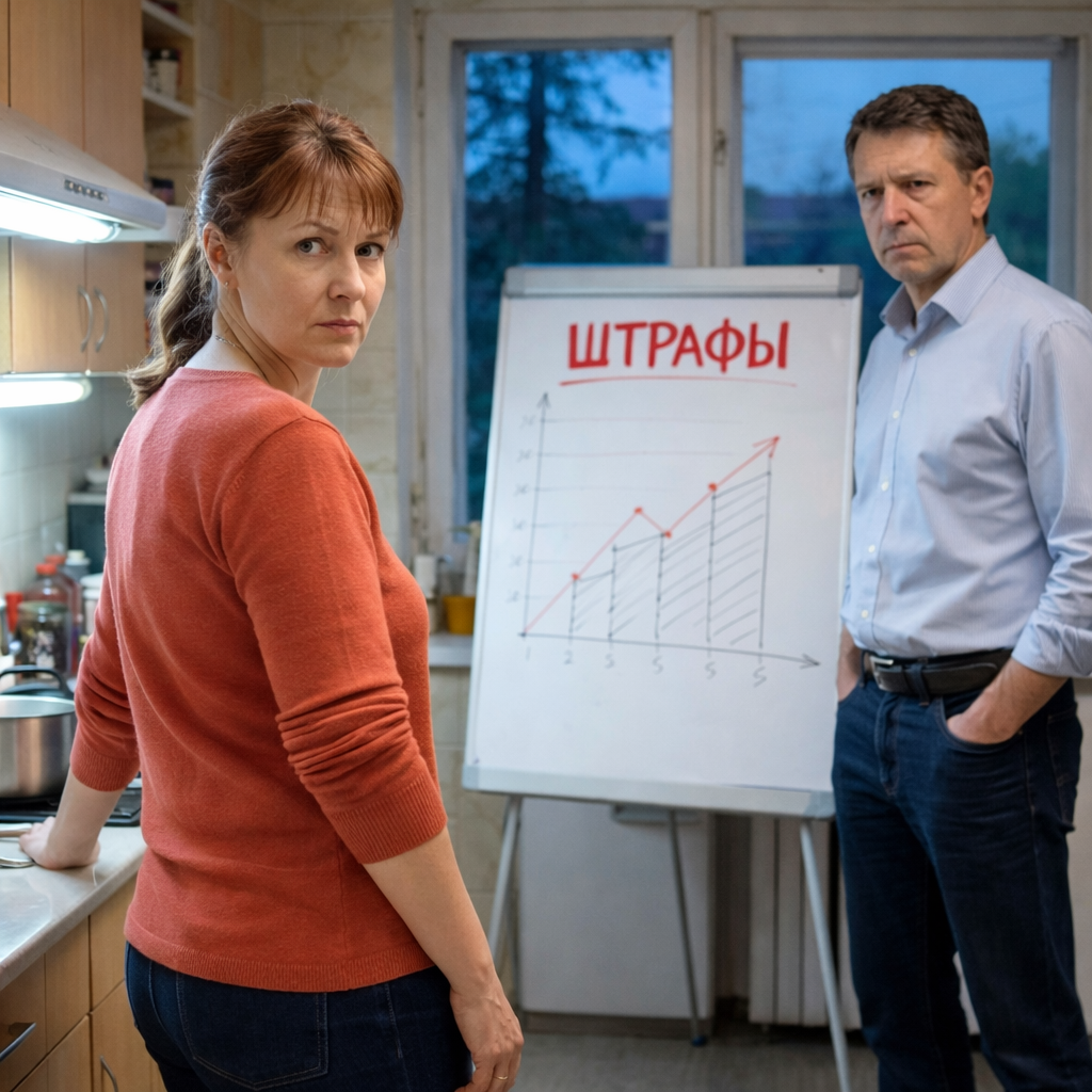 Виктор сидел за кухонным столом в вытянутых на коленях домашних штанах, но спину держал так прямо, будто на него смотрел совет директоров. Посреди нашей шестиметровой кухни, перегородив проход к холодильнику, теперь громоздилась белая маркерная доска на треноге.