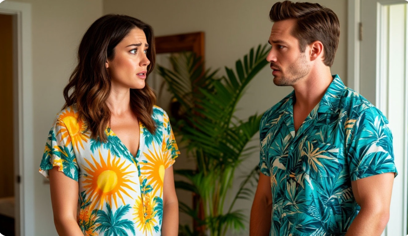 Денис замер рядом, чемодан выпал из его рук прямо на пол. Отдохнувшее лицо после двух недель в Таиланде мгновенно сменилось растерянностью.