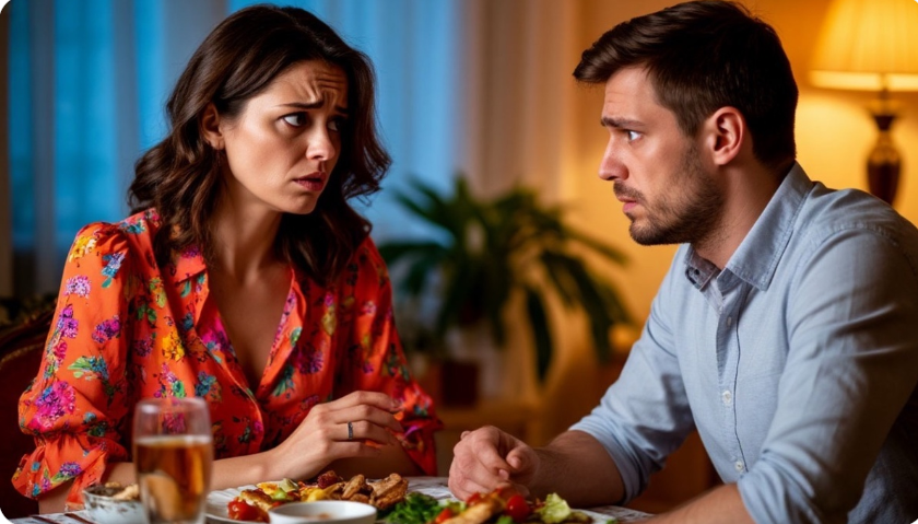 За десертом атмосфера становилась всё более напряжённой. Василий почти не участвовал в разговоре, отвечая односложно. Рита пыталась поддерживать беседу, но её улыбка выглядела всё более вымученной.