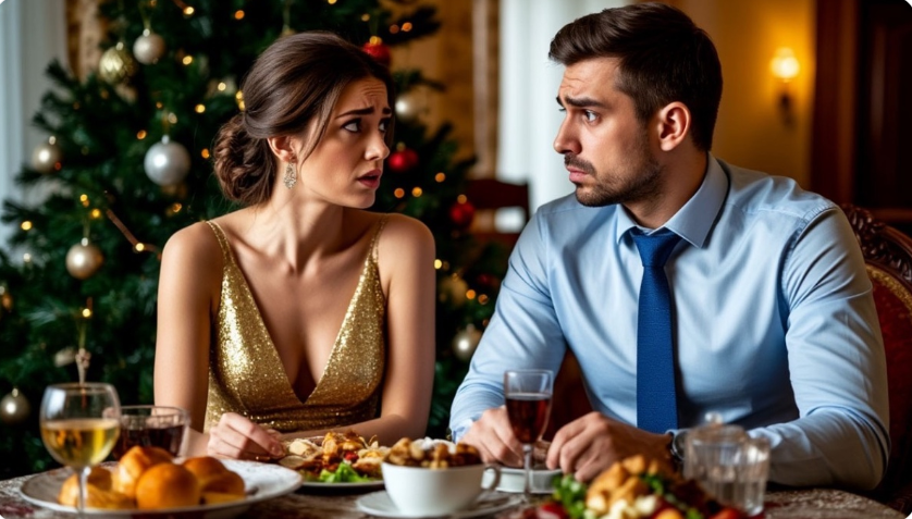 Комната замерла. Бокалы застыли в руках гостей на полпути ко рту. Новогодние гирлянды продолжали моргать, бросая разноцветные пятна на лица присутствующих.