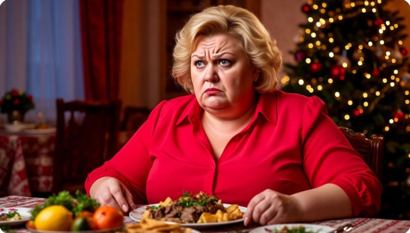 Вера осталась стоять у стола. Кастрюля оливье, блюдо с холодцом, тарелки с мимозой. Её винегрет — нетронутый. Её селёдка — почти нетронутая. Её суп — забытый на плите.