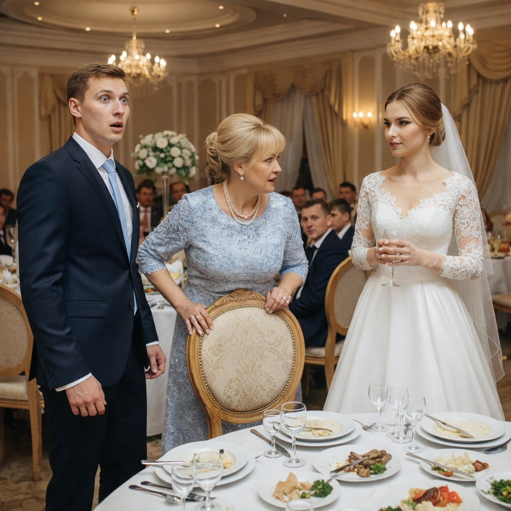 Артём побледнел. Гости за соседними столиками притихли, музыка как назло тоже стихла. Его мать, Валентина Сергеевна, медленно поднялась со стула, сжимая в руках бокал так, что побелели костяшки пальцев.