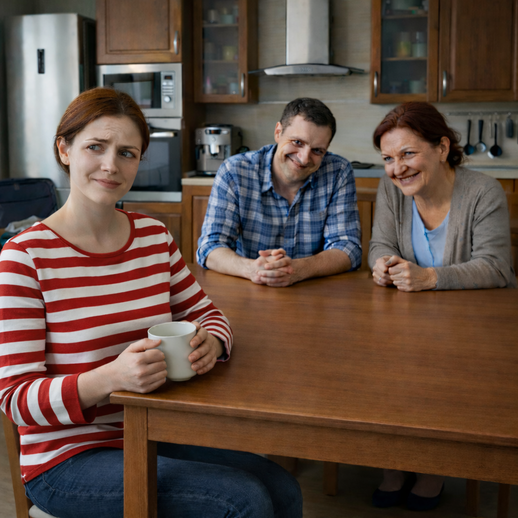 Нина медленно опустила чашку на кухонный стол. Она смотрела на мужа, сидящего в расслабленной позе напротив нее, и на свекровь, которая устроилась рядом, аккуратно разглаживая несуществующие складки на дорогой скатерти.