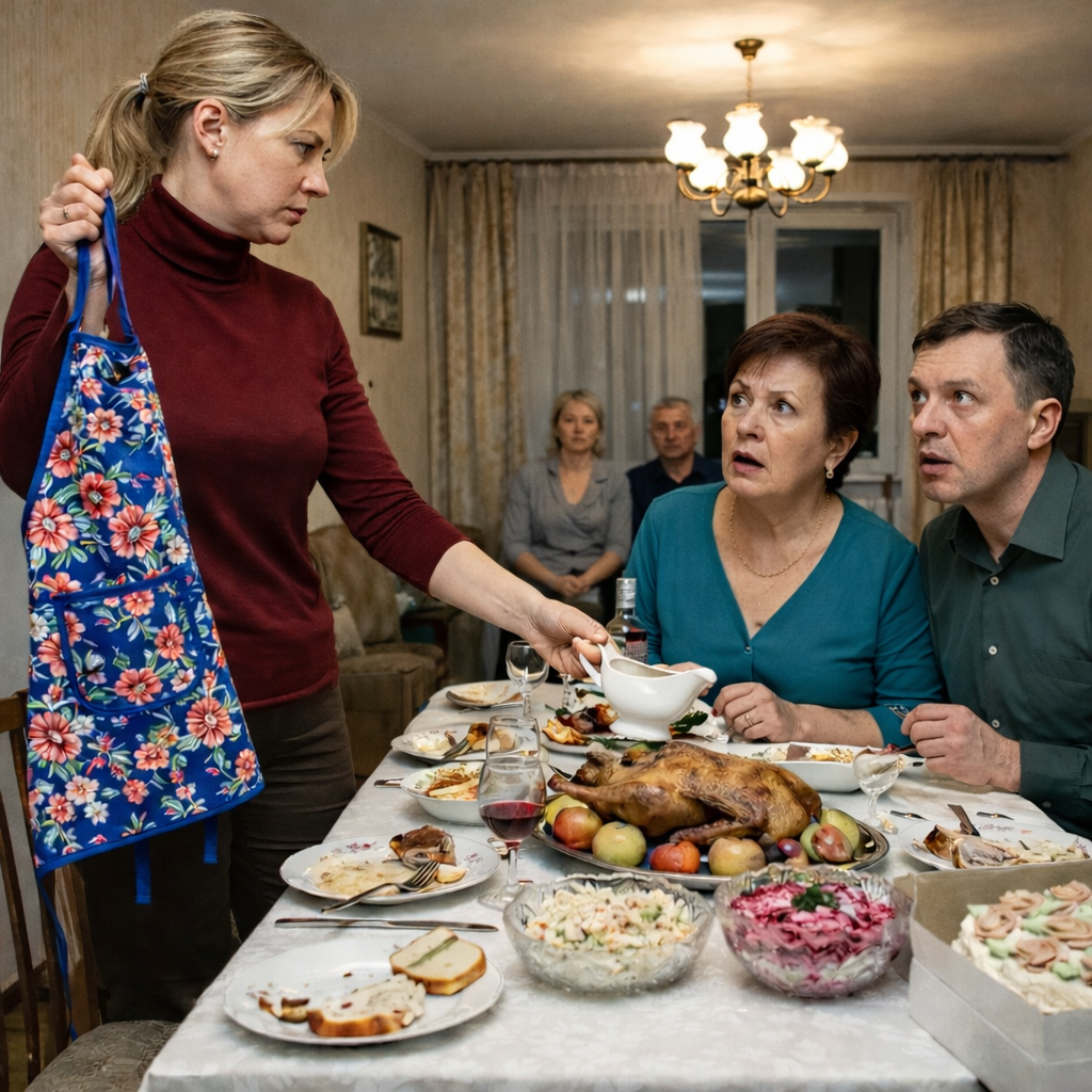 Вера подняла на него глаза. В них больше не было ни вины, ни усталой покорности. Там горел холодный, ясный свет. Она медленно стянула с себя фартук, перекинула его через спинку стула и посмотрела прямо на свекровь, затем на золовку, и, наконец, на мужа.