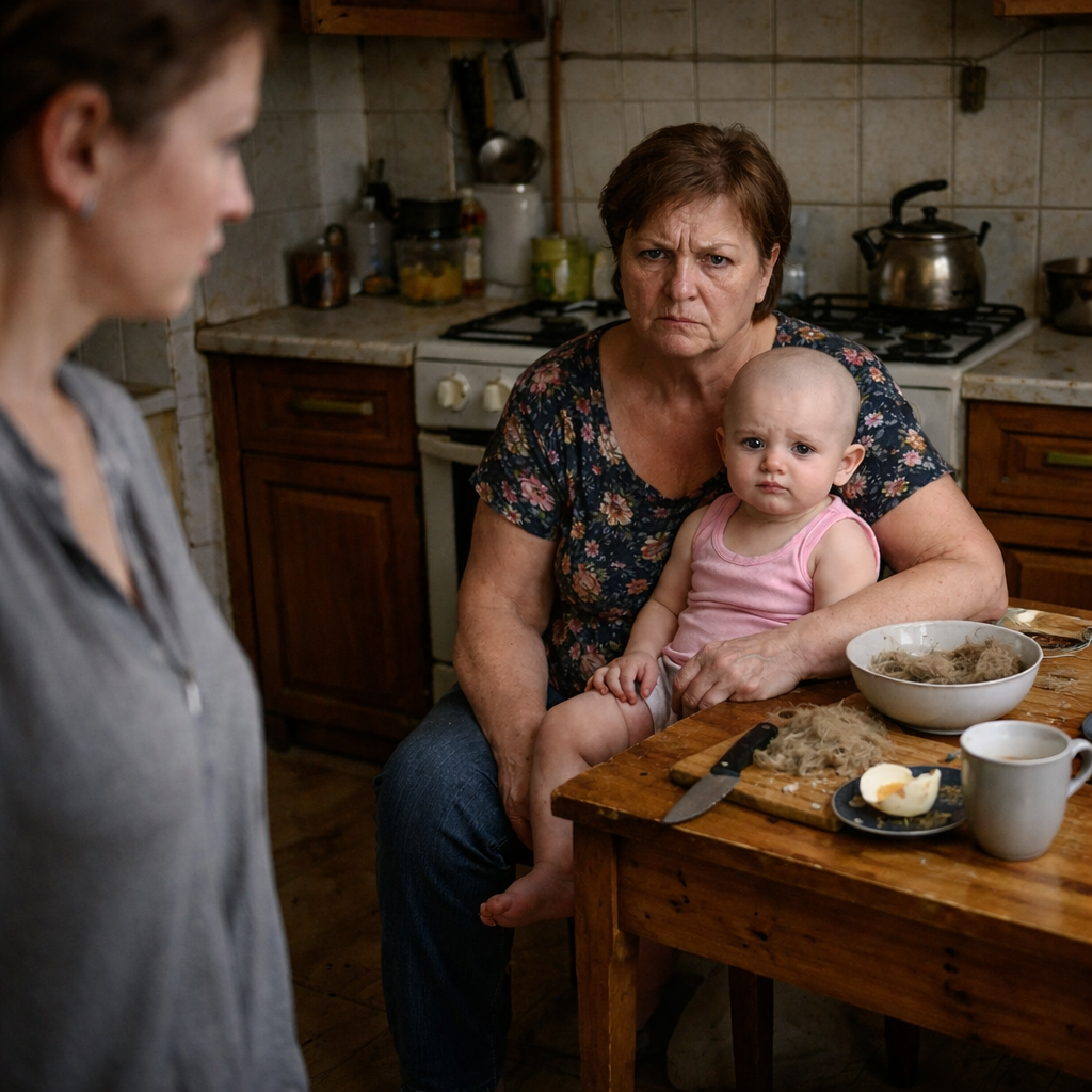 — Ну вот, — свекровь улыбалась, покачивая внучку. — Теперь у нашей красавицы вырастут настоящие волосы. Густые, крепкие. Правда, Алиночка?
