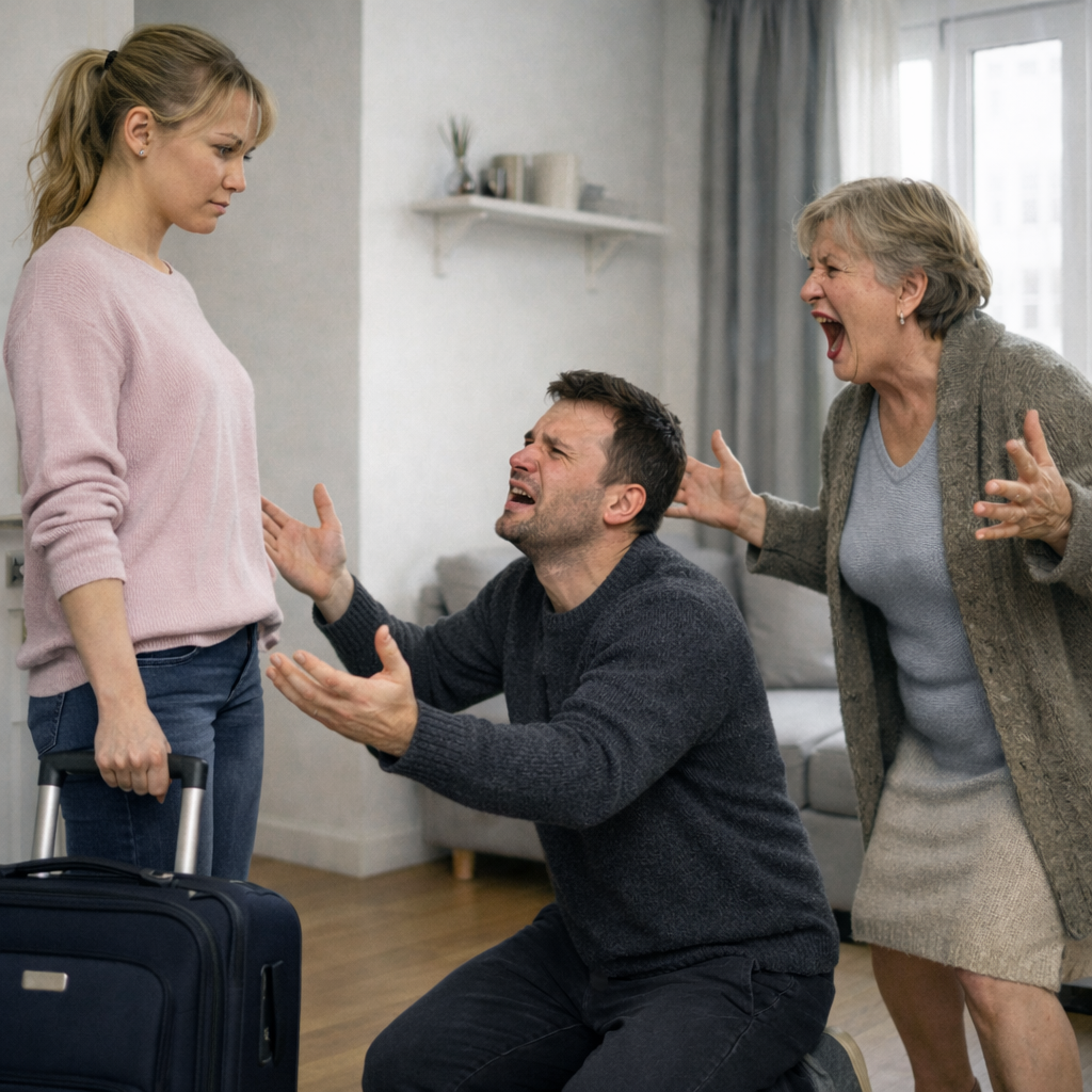 Он посмотрел на мать, потом на меня. И вдруг правда опустился на колени. Прямо там, на мокром асфальте, в домашних тапочках. Сложил руки молитвенно.