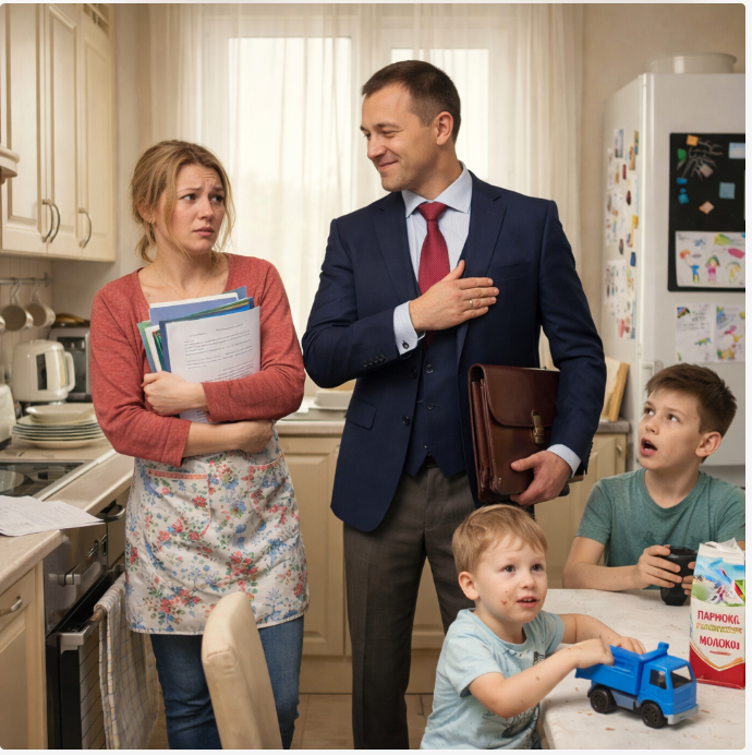 Двенадцатилетний Илья сидел за кухонным островом, безотрывно глядя в экран смартфона. Он был поразительно похож на отца — те же темные вихры, тот же упрямый, чуть надменный прищур. Пятилетний Егор возился на ковре с пластиковым самосвалом, громко имитируя гудение мотора.