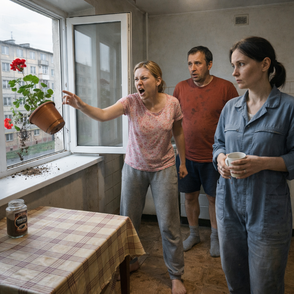 Герань в глиняном горшке летела вниз молча. Она не кричала, не цеплялась за подоконник, просто исчезла в сером прямоугольнике открытого окна, оставив на пластике грязный след от чернозёма. Секунда — и глухой шлепок об асфальт.