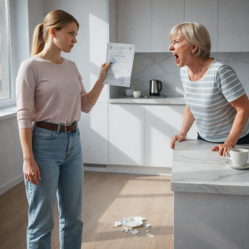 Я вытащила плотный лист с официальными синими печатями и положила его прямо перед свекровью, поверх рассыпанных хлебных крошек.