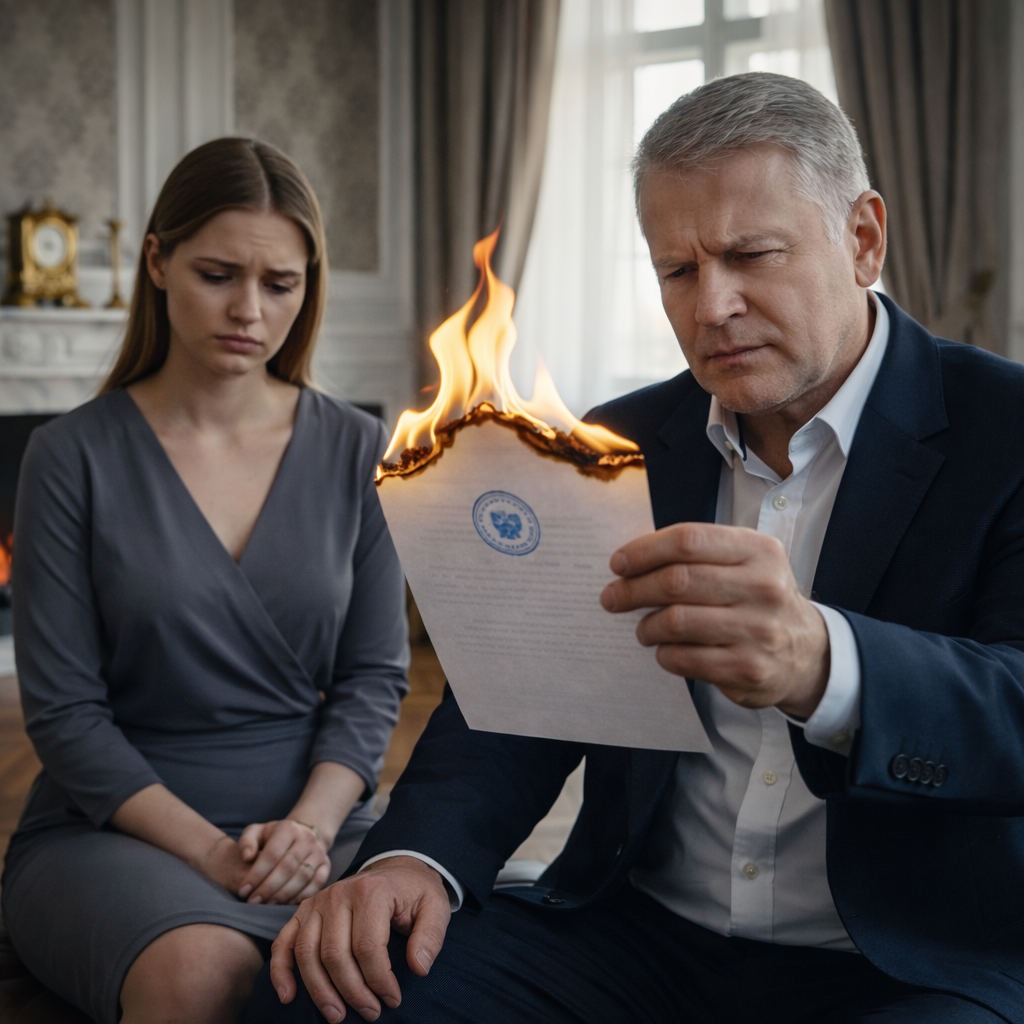 Свёкор сидел неподвижно, приоткрыв рот от шока. Вся его самоуверенность, вся спесь и первобытная наглость испарились в одну короткую секунду. Он переводил безумный взгляд то на темный экран, то на бумагу с печатью, то на догорающие угли в камине. Там навсегда покоилась его глупая надежда на чужое богатство.