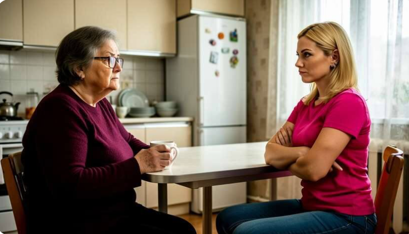 Риторический вопрос завис в воздухе невысказанным: почему мать должна иметь доступ к жизни взрослого сына и его жены? Марина медленно повернулась. Людмила Ивановна сидела с каменным выражением лица — требовательная, непреклонная, уверенная в своей правоте. Вот она, драма повседневности: не землетрясение, не война, а простой разговор на кухне, который способен разрушить всё.