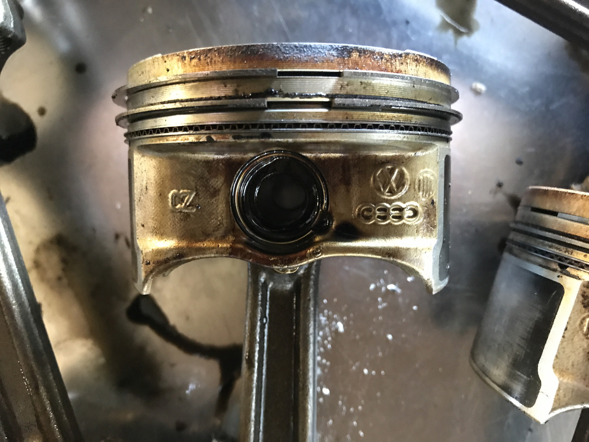 Итак, погнали! Сначала заглянем в «сердце» Polo. Вот он, поршень, отвечающий за тысячи рабочих циклов. Выглядит не так уж плохо для своего пробега, не правда ли? Конечно, есть небольшой нагар, куда без него. Но критичного, на первый взгляд, ничего нет.