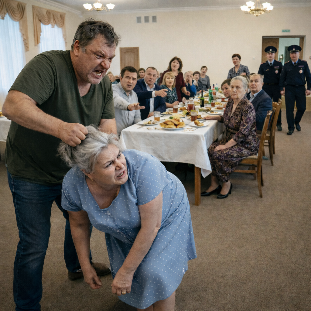Рука Никанора, тяжёлая и горячая, намотала мои волосы на кулак. Я почувствовала, как кожа на затылке натянулась, заставляя меня закинуть голову. В глазах зарябило от света хрустальных люстр актового зала. Сорок пять человек — вся наша родня, бывшие коллеги, соседи по Касимову — замерли. В зале повисла такая тишина, что было слышно, как в углу на фуршетном столе шипит открытая бутылка минералки.