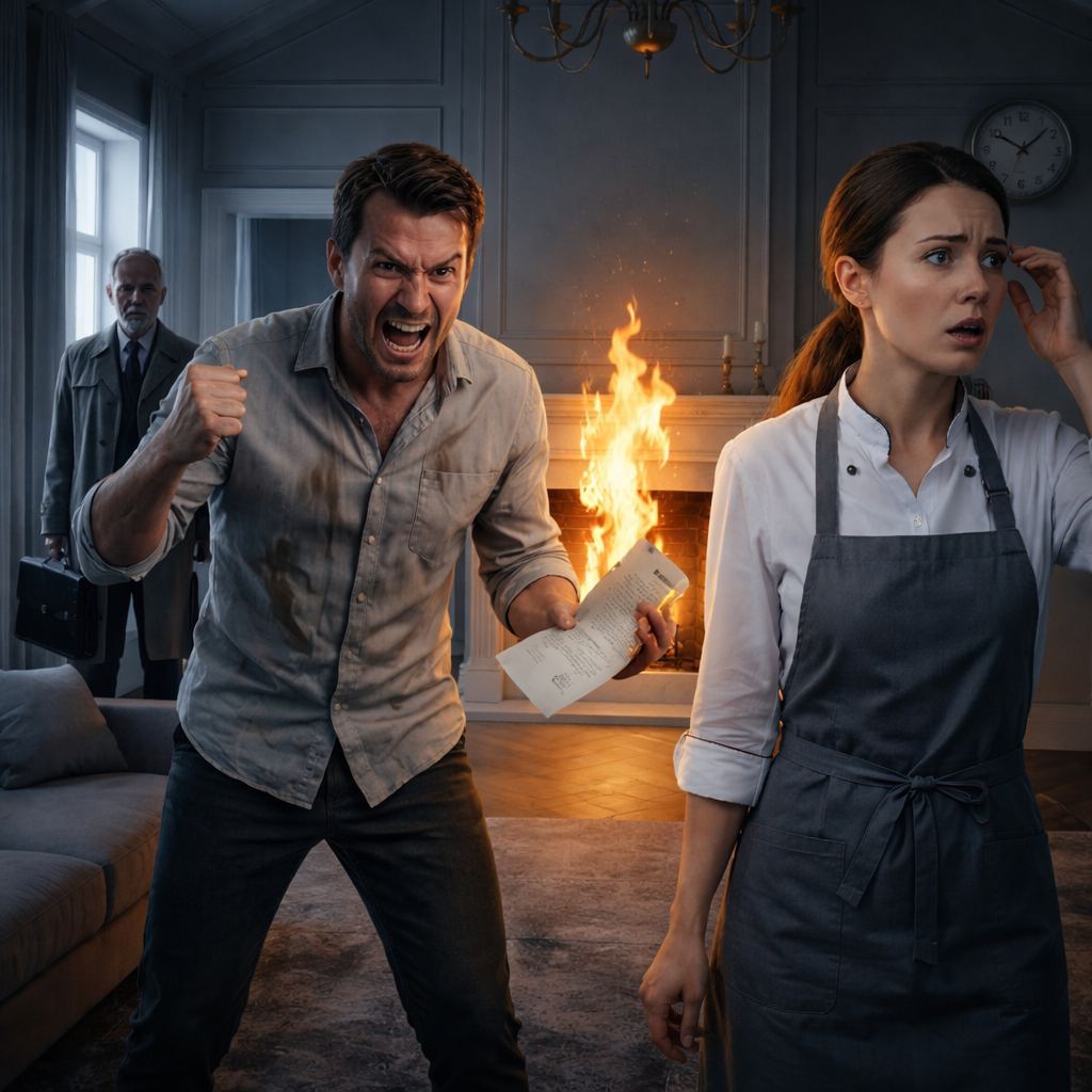 — «Всё моё имущество… внучке Кристине…» — он читал вслух, и его голос дрожал от ярости.