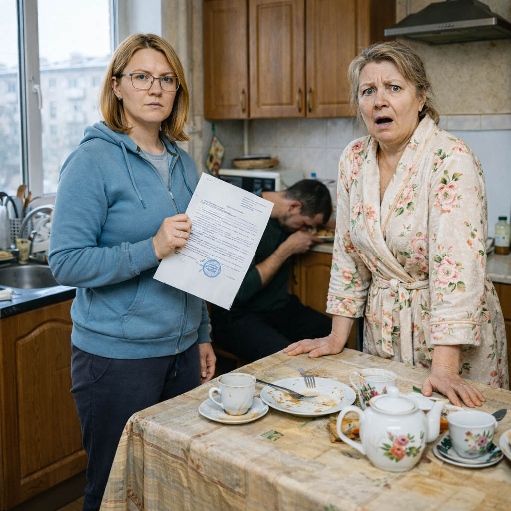 «Вот, — сказала она ровным, чётким голосом, как диктор, объявляющий погоду. — Нотариально заверенное свидетельство. Квартира приобретена в браке на средства, полученные от продажи моего личного имущества. Я — собственник. Совладелец — Алексей. Вы, Валентина Петровна, собственником не являетесь. Прописаны вы в другом месте».