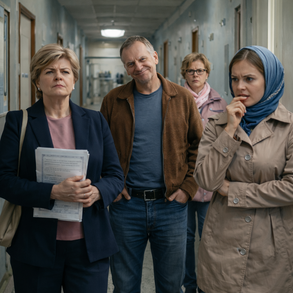 В этот момент зазвонил её телефон. Последняя модель, стекло блестело под люминесцентными лампами. Она ответила чётким, деловым тоном, который странно звучал в казённом коридоре.